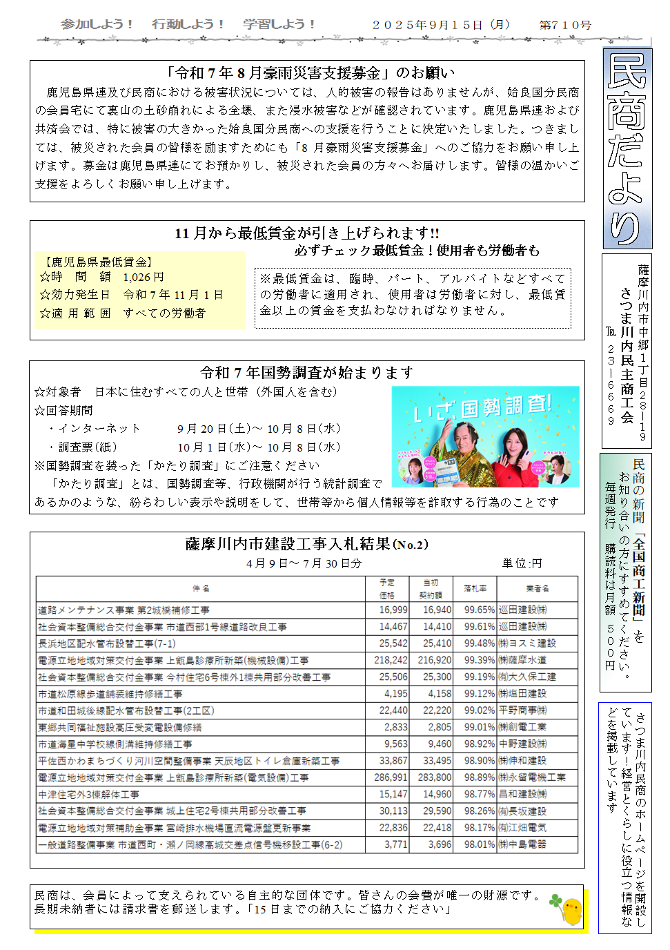 ⦿薩摩川内市建設工事入札結果(9月12日~10月24日分)