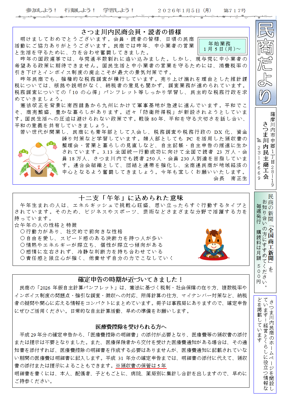 『民商だより 2026/01/05 第717号』を掲載しました