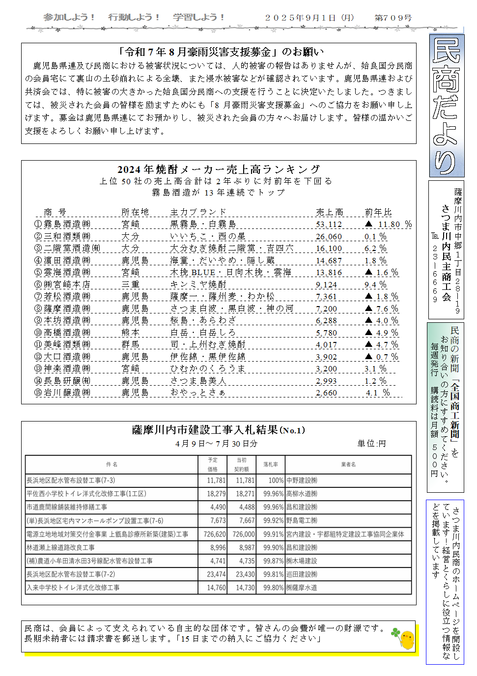 ⦿薩摩川内市建設工事入札結果(9月12日~10月24日分)